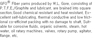 탄소섬유로 편조하고 P.T.F.E. Dispersion을 함침시킨 패킹이다. 내열, 내약품성이 우수한 것은 물론, 열전도성이 양호하며, 마찰열의 방산이 용이하고 수명이 길다. 부식성 유체, 유기용제, 증기, 열수, 탄화수소, 각종 기름, 회전기기, 밸브, 회전펌프, 교반기, 플랜지 등에 사용된다.